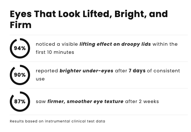 "I’ve been struggling with tired, droopy eyes for years. After just a week, my eye area looks lifted and brighter no irritation at all."